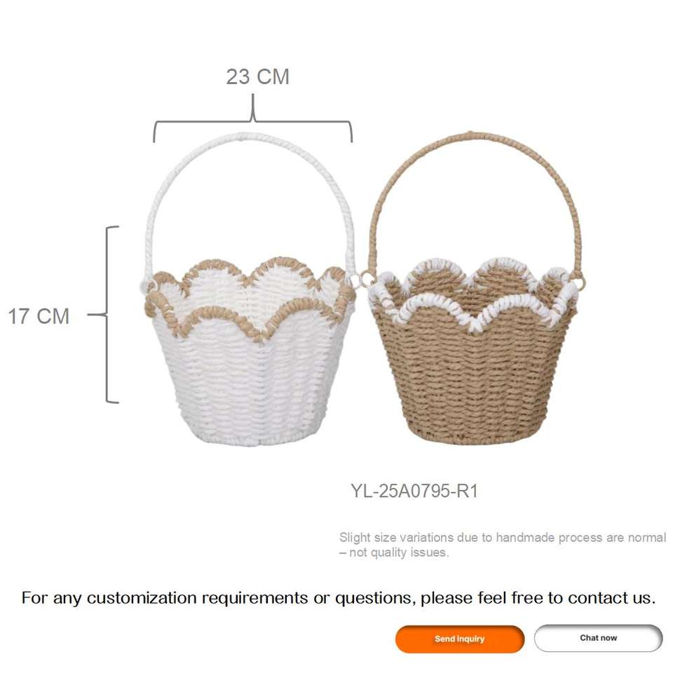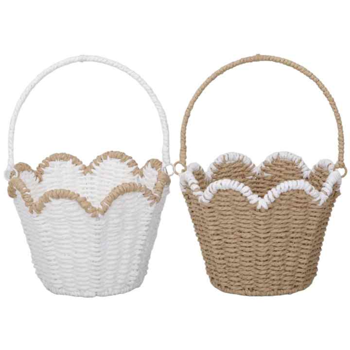 Cesta de Almacenamiento Tejida con Cuerda de Papel con Borde Festoneado, Asa Desmontable, para Pascua, Flores, Regalos de Boda, Decoración de Guardería, Organizador Personalizado
