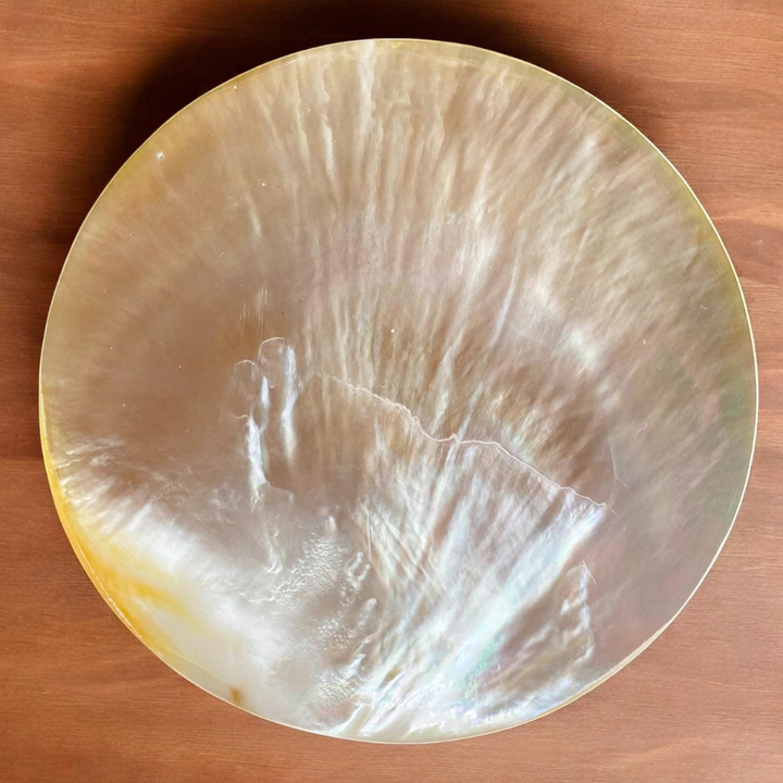 Plato de Concha con Borde Festoneado y Superficie Iridiscente para Exhibición de Joyas, Base para Velas y Decoración, de Vietnam