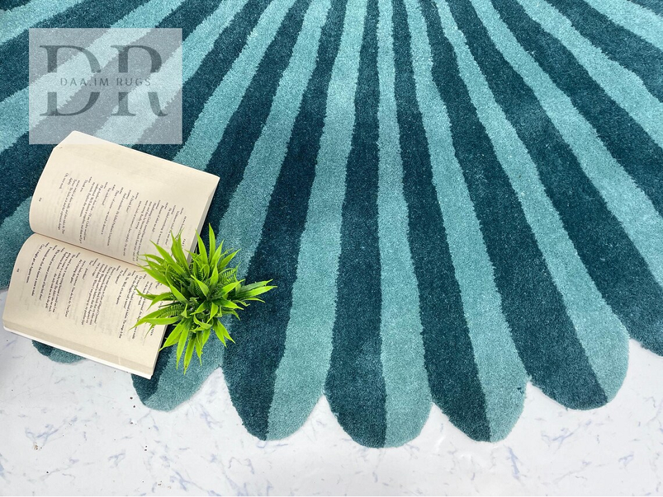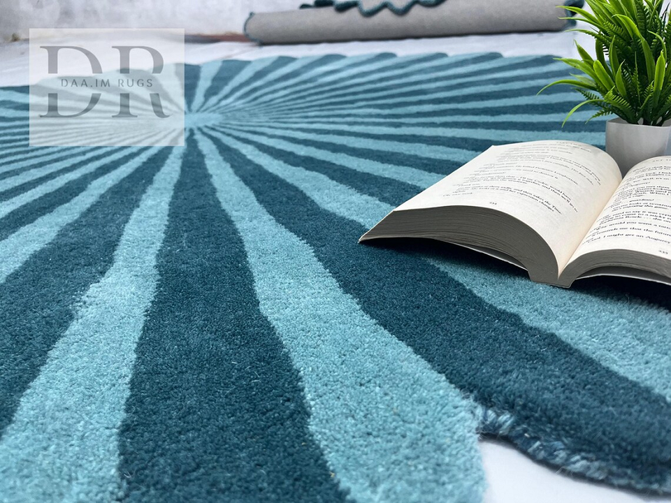 Alfombra Redonda de Diseño Escamado, Tejida a Mano, con Doble Tono, en Tamaños 3x3, 4x4, 5x5, 6x6, 7x7, 8x8, 9x9, 10x10 para Hogar, Dormitorio, Sala de Estar