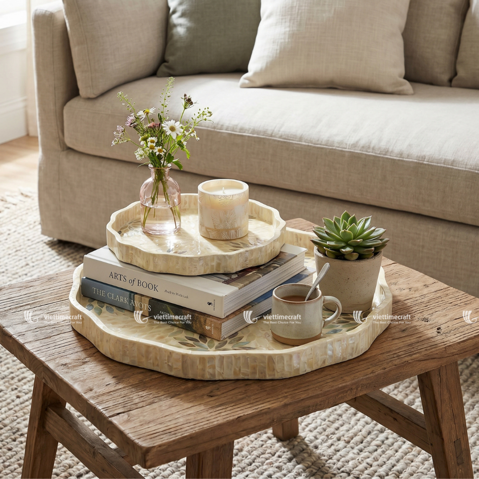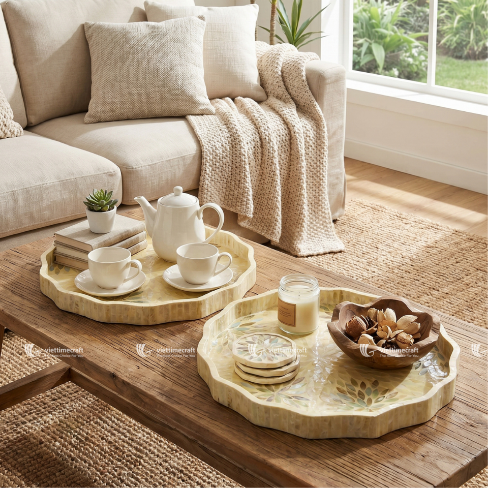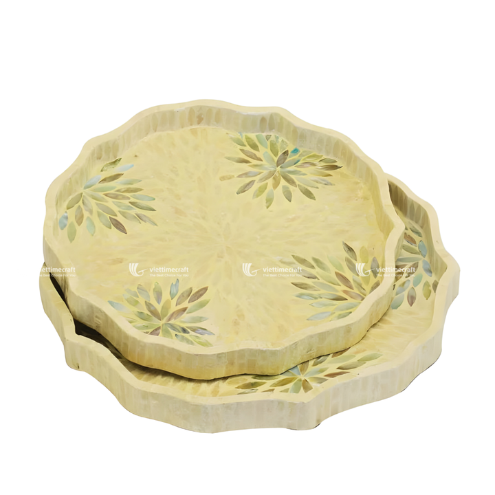 Juego de bandejas con incrustaciones de nácar festoneadas, mosaico de girasoles bohemios, decorativas, multifuncionales, de concha, artesanales de primera calidad