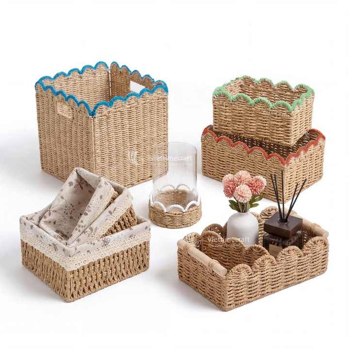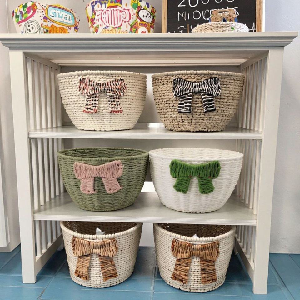 Cesta de Almacenamiento Tejida de Paja Ecológica, Cestas de Almacenamiento de Paja Personalizadas OEM ODM para Organizador de Armario, Accesorios de Baño, Decoración del Hogar