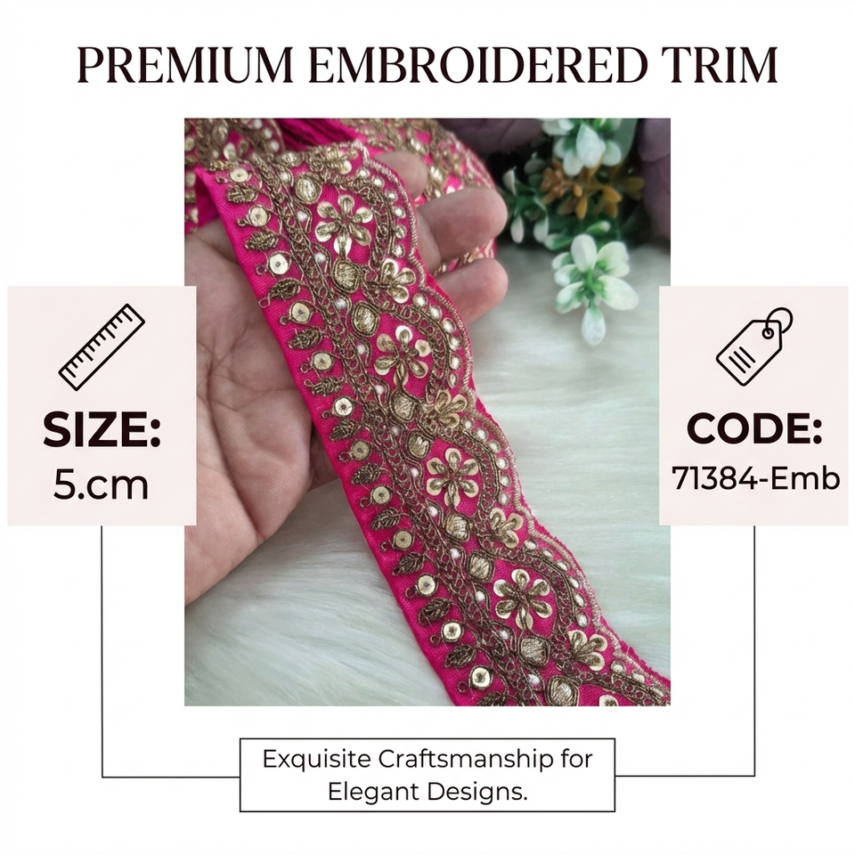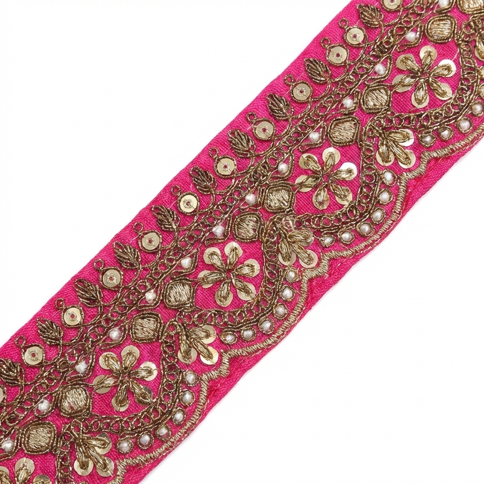 Ribete de encaje vintage ecológico de lujo con lentejuelas de 1 7/8 pulgadas, bordado festoneado, para prendas étnicas y de novia