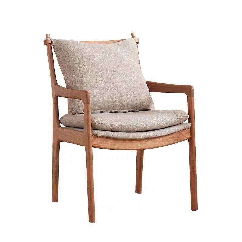 Sillón Escandinavo de madera maciza, cojín de lino suave diseñado para comedor y salas de estudio