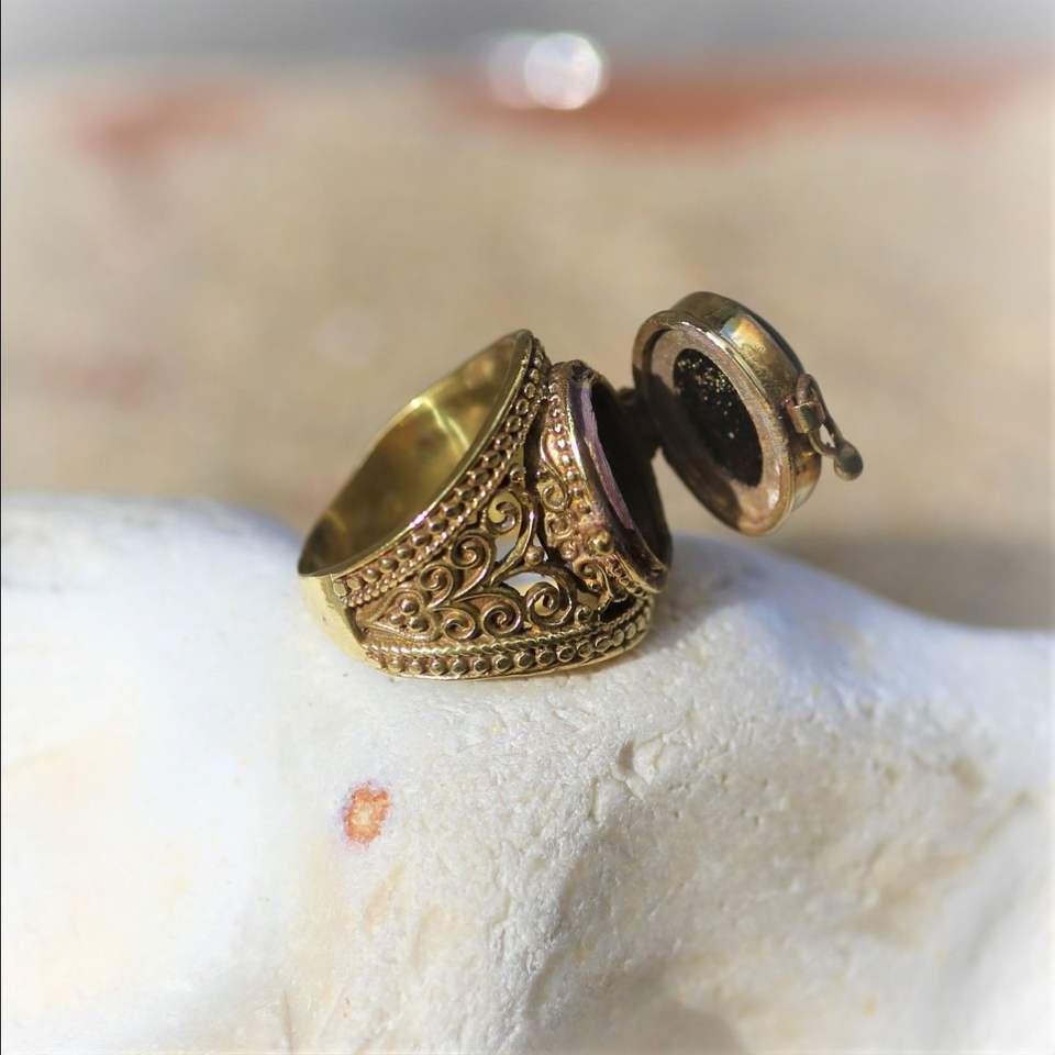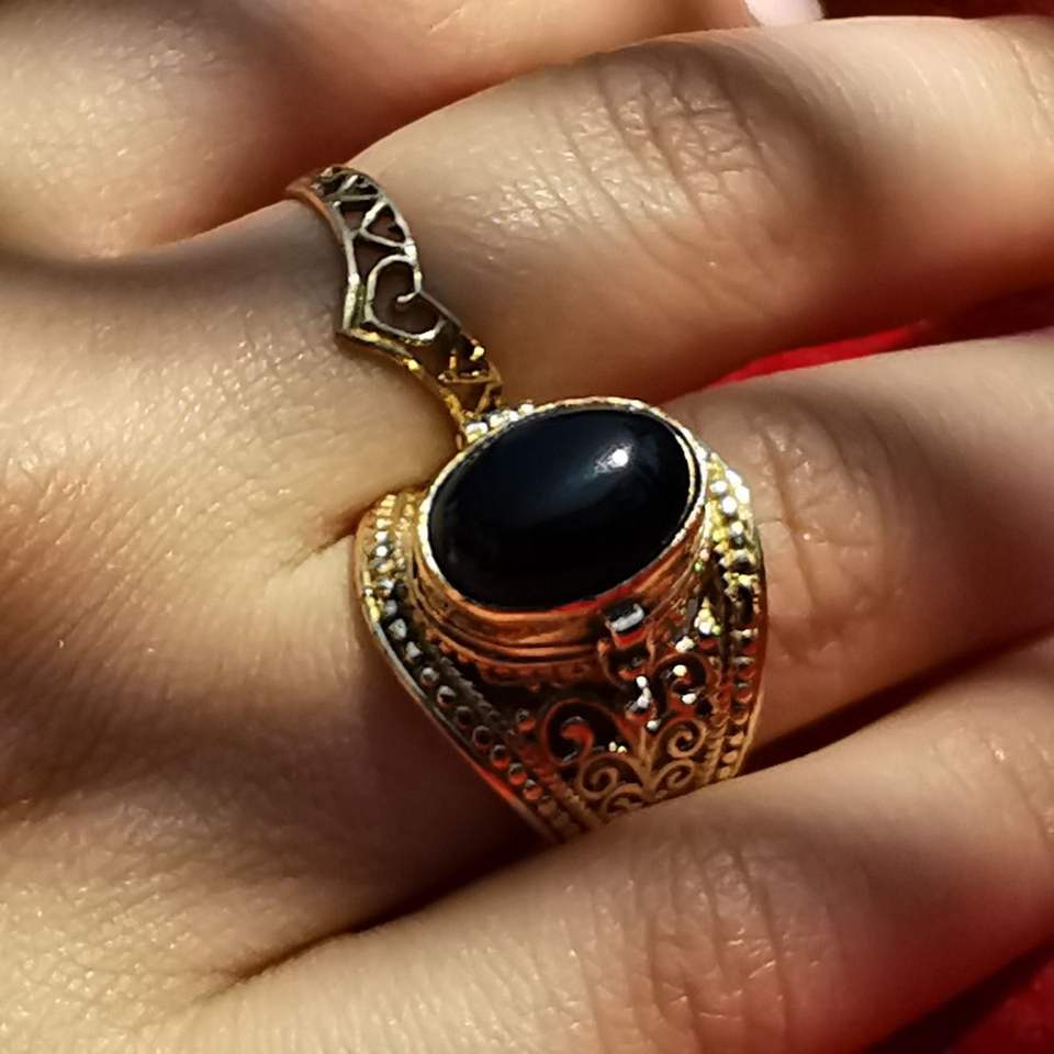 Anillo de Latón con Compartimento Secreto en Forma de Escarabajo | Anillo Ajustable de Escarabajo Dorado | Joyería de Ónix y Piedra Lunar | Regalo Único