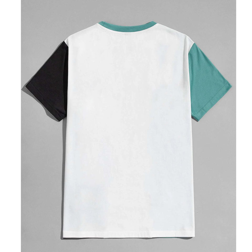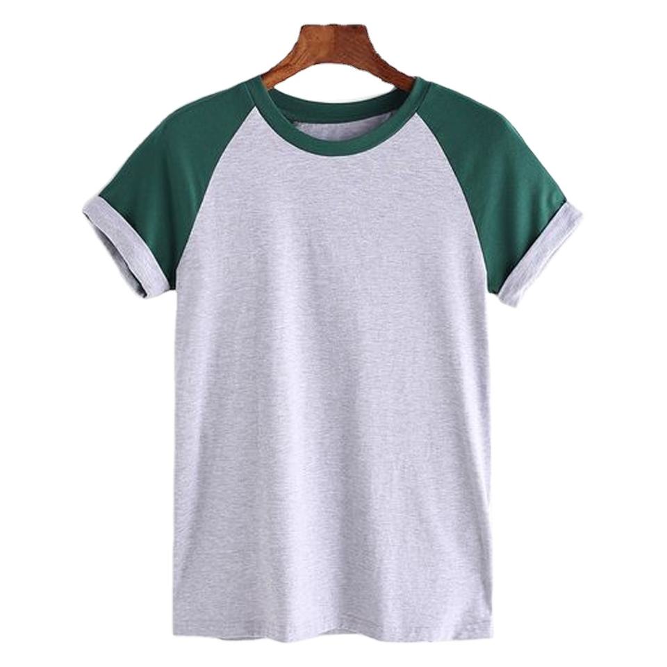 Camiseta de cuello redondo de bloque de Color para escuela, remera de manga, camiseta de bloque de Color