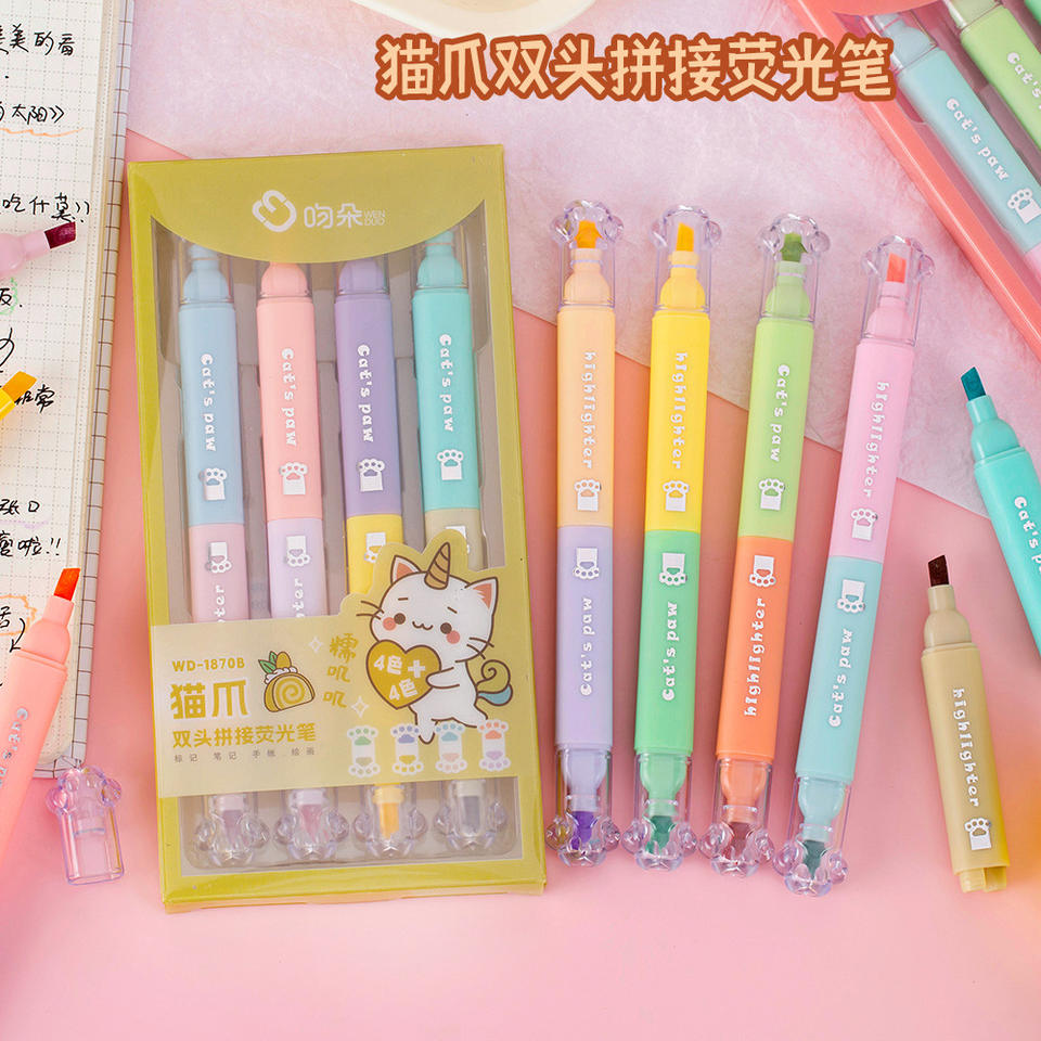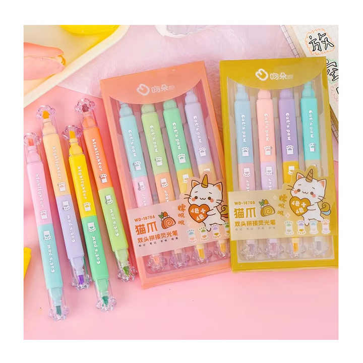 Juego de Marcadores Pastel de Doble Punta con Diseño de Pata de Gato para Estudiantes, 4 Colores