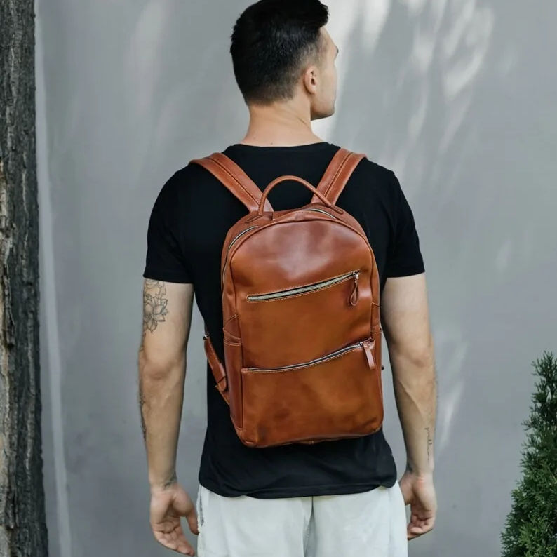 Mochila de cuero genuino Vintage urbana grande Unisex personalizada bolsa de lona caramelo estilo Hipster escuela trabajo Viaje gimnasio uso diario