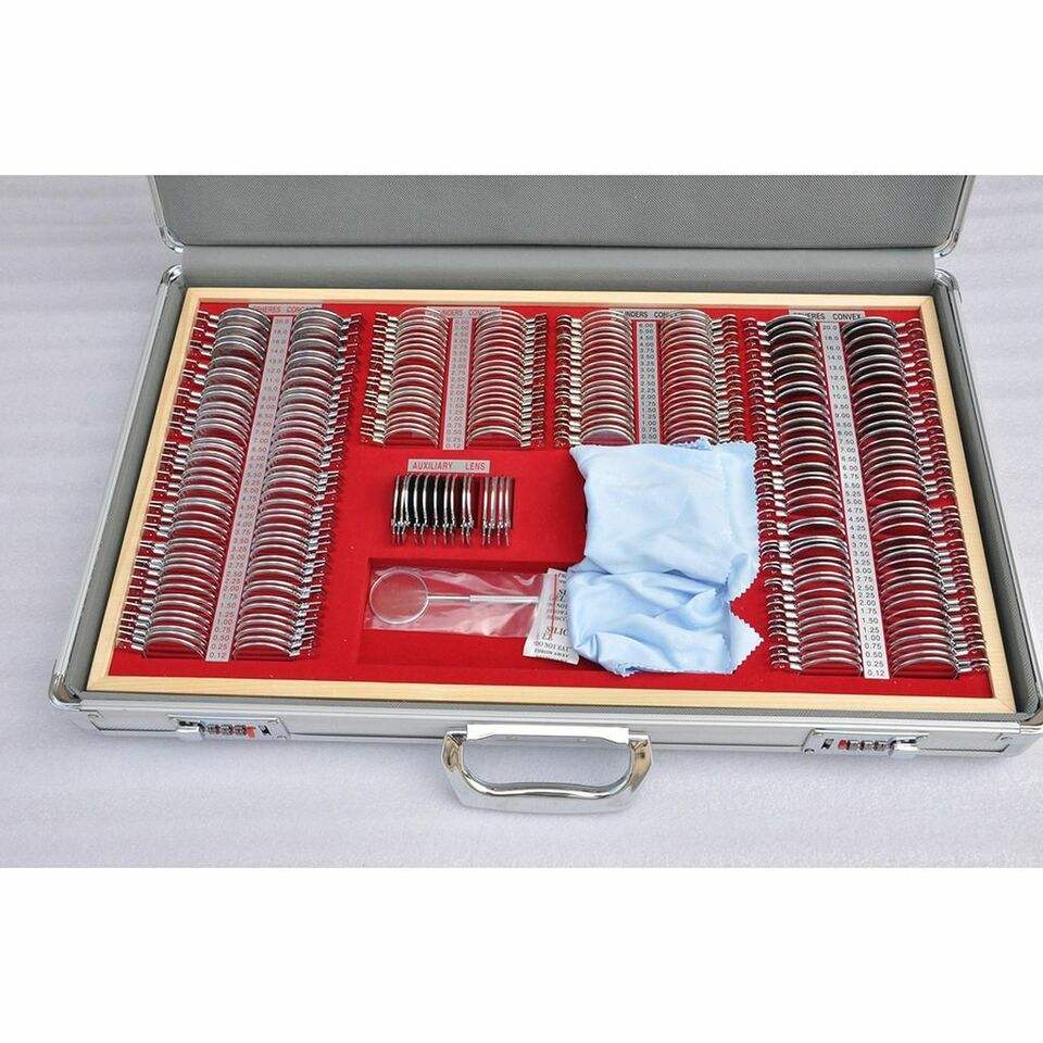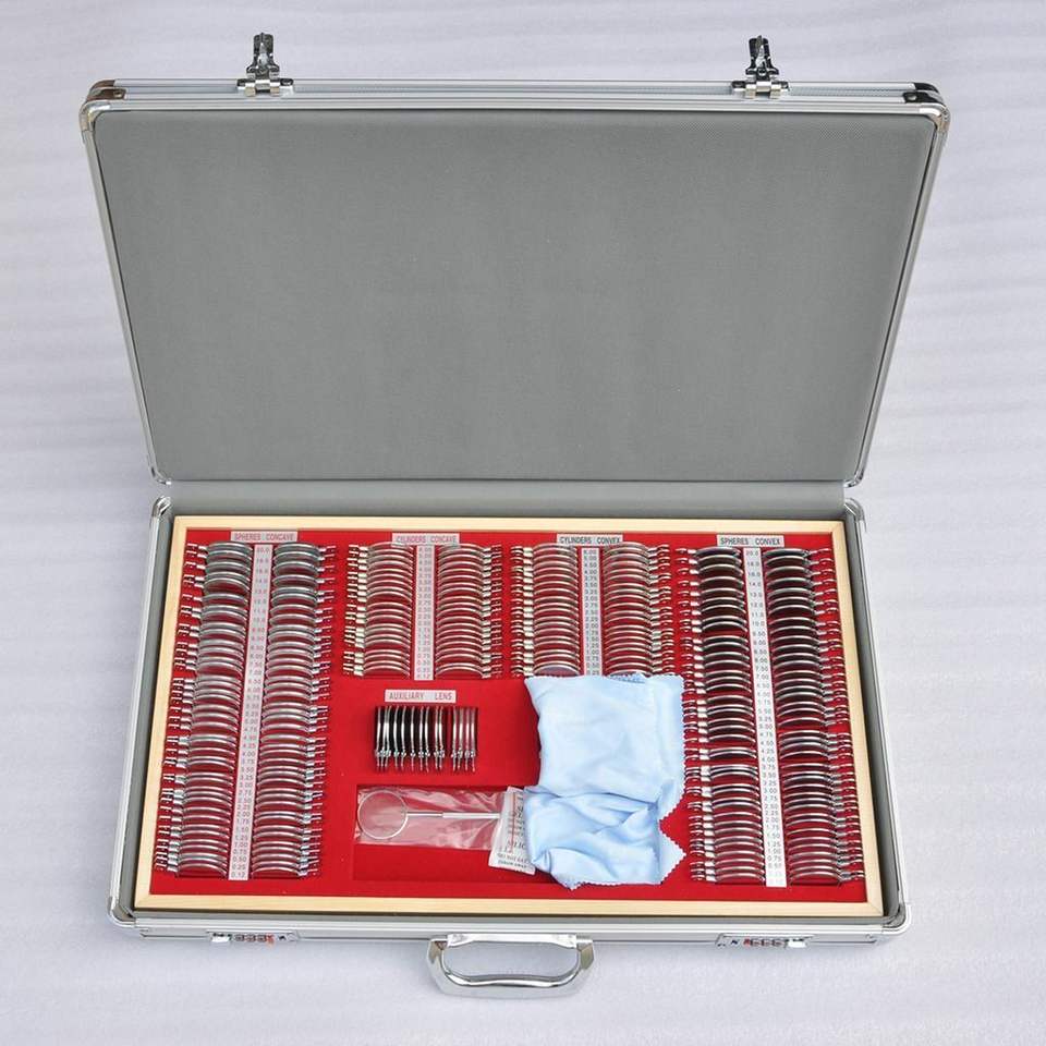 Suministros de equipos oftálmicos de Optometría de 266 piezas para Ciencia y cirugía, juego de lentes de prueba para examen óptico, garantía de 1 año