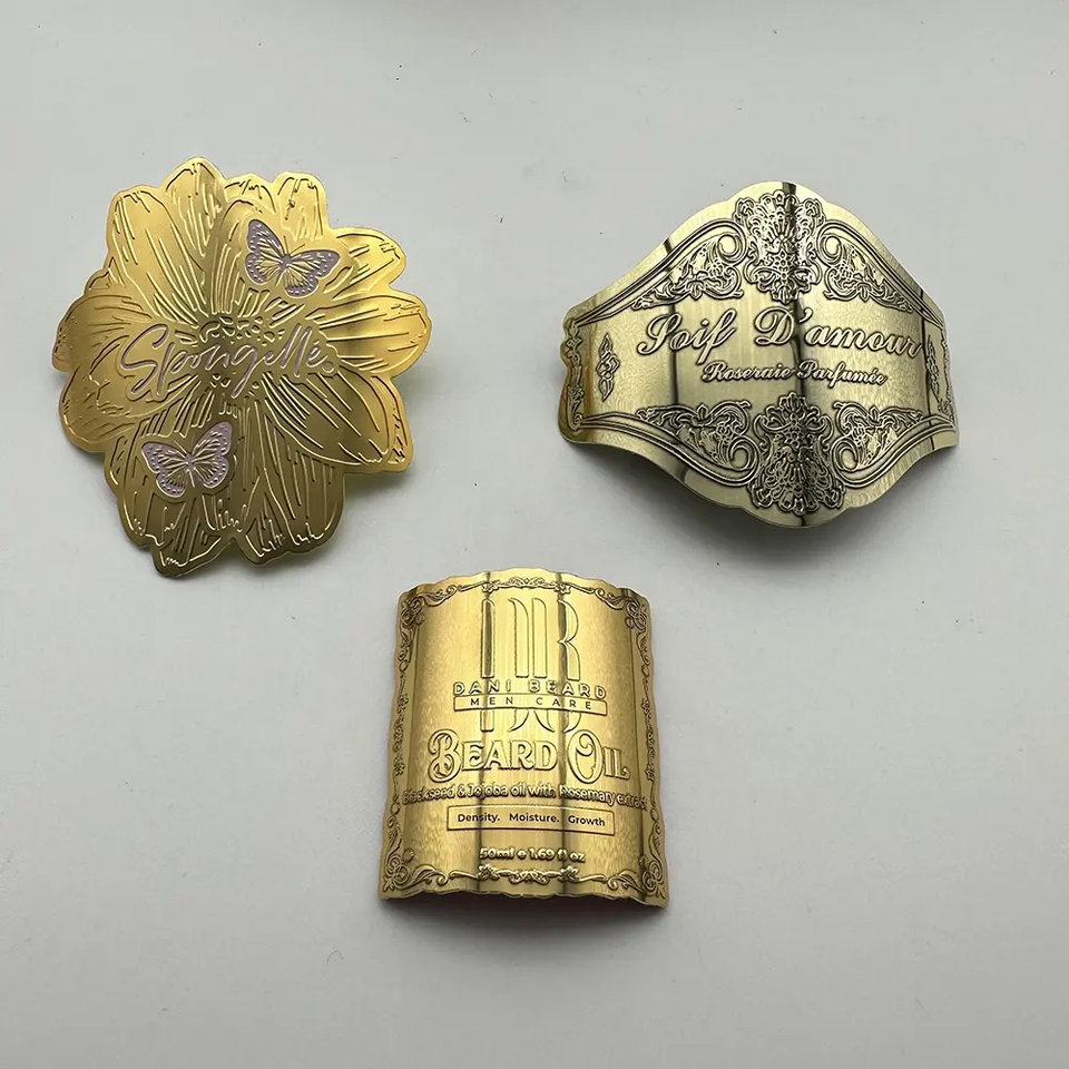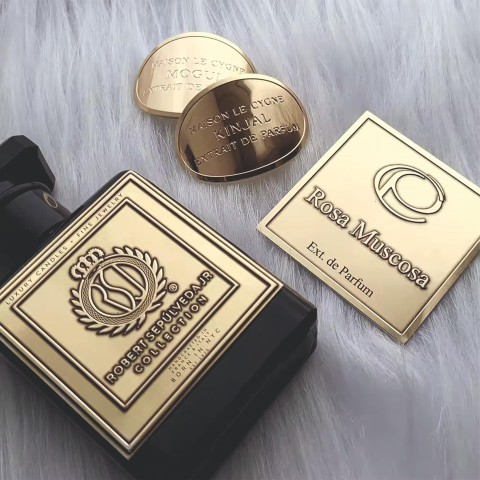 Etiqueta de Aluminio Serigrafiada, Placa de Identificación Metálica de Color Personalizado, Adhesivo para Ropa, Bebidas, Embalaje Ecológico de Lujo