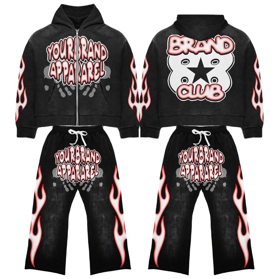 Type:Screen Printing Acid Wash Flared Tracksuits