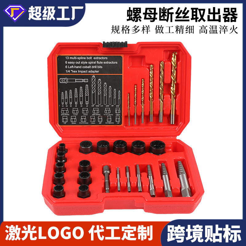 Juego de Extractores de Tornillos y Tuercas de 26 Piezas, Espiral, Métrico, Acero con Alto Contenido de Carbono, Estilo Inglés, Tamaño de Accionamiento de 0.25 Pulgadas, Kit de Herramientas para Reparaciones del Hogar
