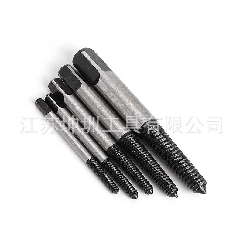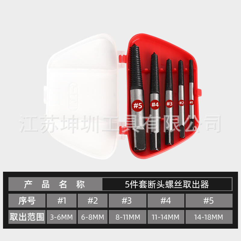Extractor de tornillos, juego de 5 piezas, acero al carbono métrico con estría en espiral, grado industrial, para extracción de tornillos o pernos dañados