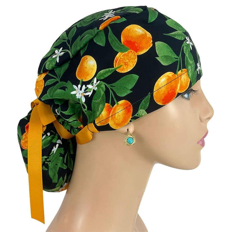 Gorro de fregado con botón, coleta para mujer, pelo largo, gorro de enfermera ajustable, gorro de trabajo de enfermería con banda para el sudor, gorro quirúrgico Bouffant