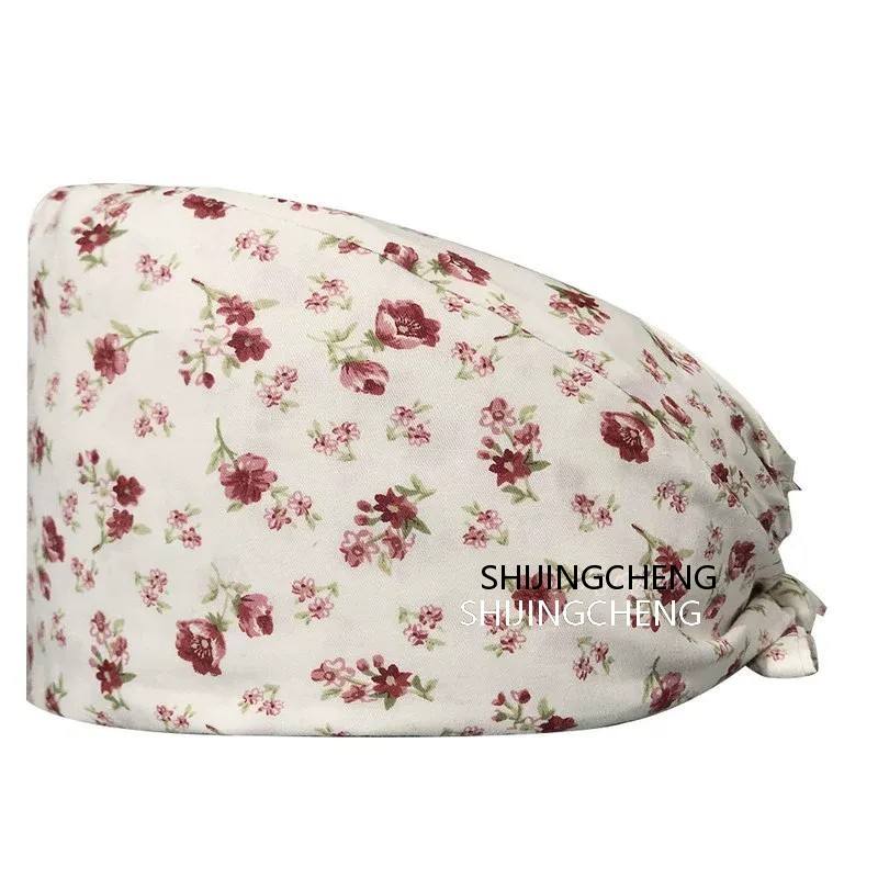 Gorro Quirúrgico para Mujer, Gorros de Enfermera Quirúrgica con 2 Botones, Gorro de Trabajo de Algodón con Banda Absorbente para Cola de Caballo, Gorros Quirúrgicos para Cabello Largo
