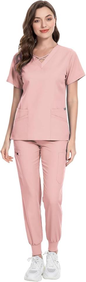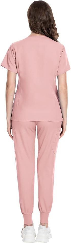 Conjunto de pantalones de Jogger modernos con 8 bolsillos para mujer, uniforme atlético de enfermería, ropa de trabajo elástica sólida, con cuello en V Top, estampado para uso hospitalario