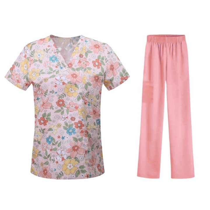 Conjunto de uniforme médico ajustado con cuello en V para mujer