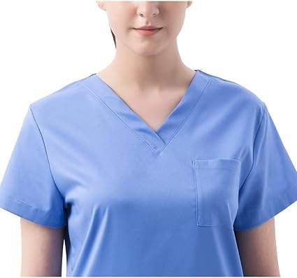 Uniforme Médico para Mujer, Conjunto de Blusa con Cuello en V y Pantalones Cargo, Tela Elástica Transpirable, Múltiples Bolsillos, Color y Logotipo Personalizables