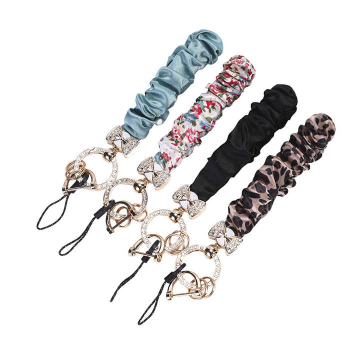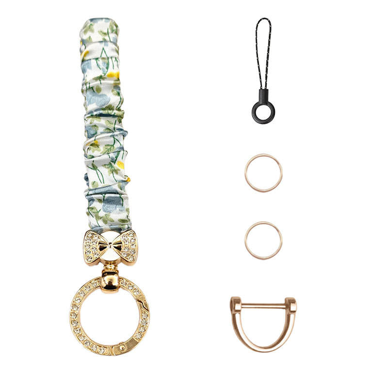 Llavero con Correa para Muñeca, Diseño de Moño con Brillantes y Diamantes de Imitación, para Teléfono Celular o Smartphone