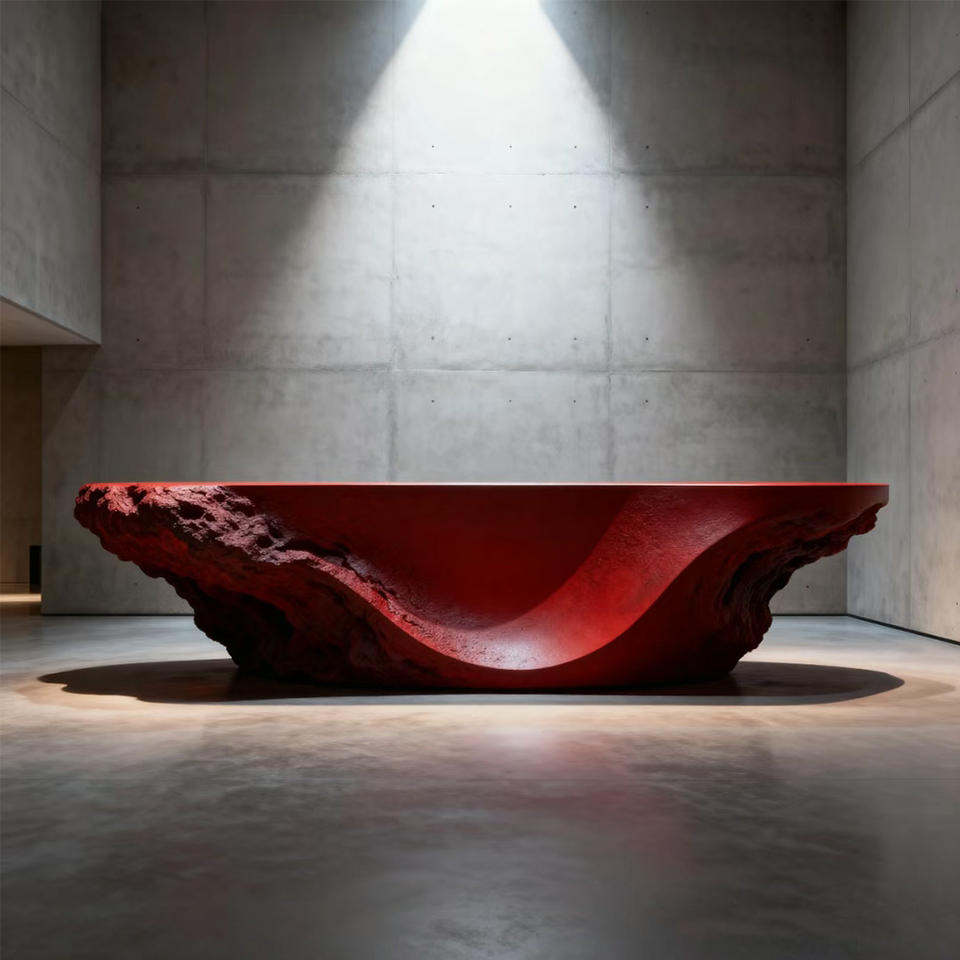 Mostrador de Recepción de Diseño Escultural con Textura de Piedra Tallada para Diseños de Interiores Modernos y Vestíbulos Comerciales