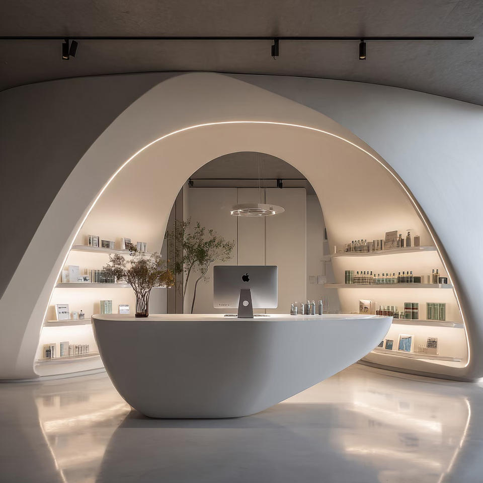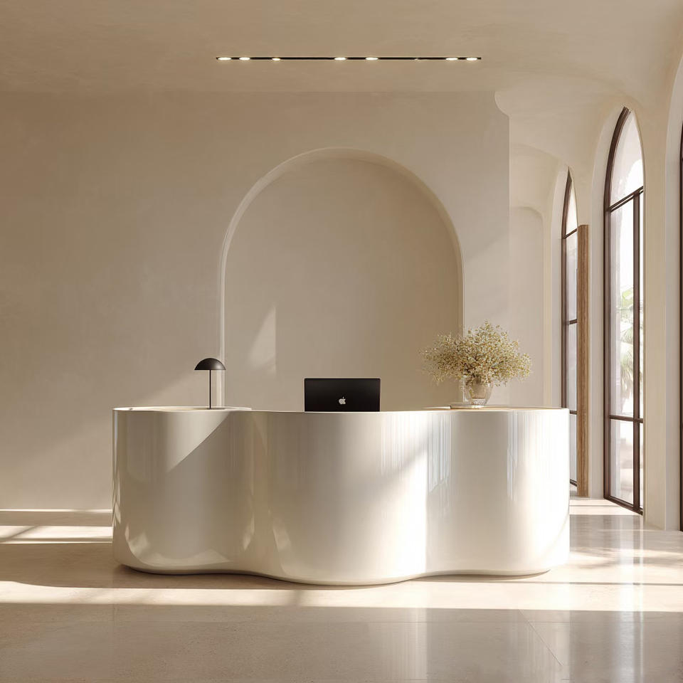 Mostrador de Recepción Escultural Orgánico con Textura de Piedra Natural para Vestíbulos de Oficinas de Primera Clase, Tiendas Minoristas y Entornos de Hostelería