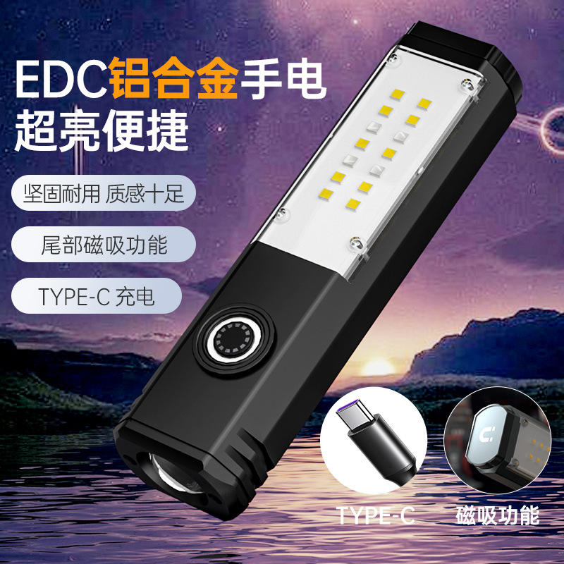 Linterna LED recargable portátil Sd18 de 2000 mAh con base magnética para acampar al aire libre y uso doméstico