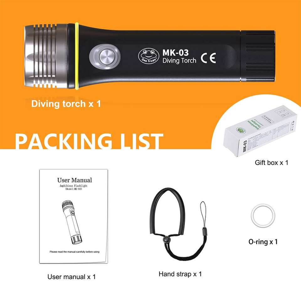 Linterna de Alta Intensidad Sea Frogs MK-03, Mini Linterna LED Multifunción para Exteriores, Luz de Buceo, Iluminación Subacuática