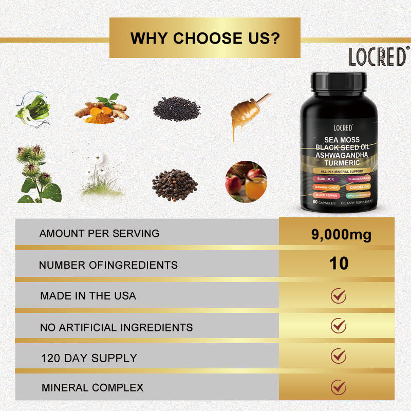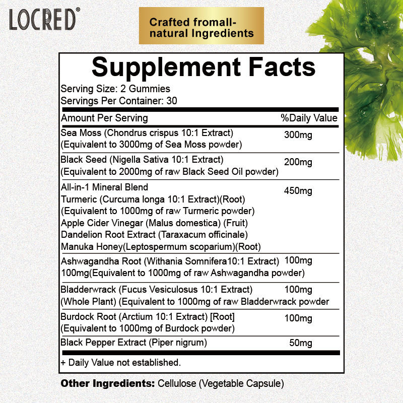 Active Ingredient:sea moss turmeric black seed oil apple cider vinegar black pepper