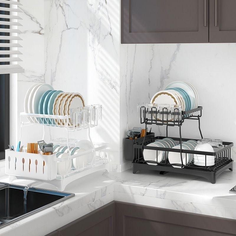 Escurridor de platos lateral de doble capa negro [Totalmente equipado]