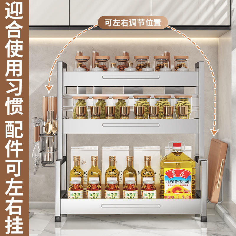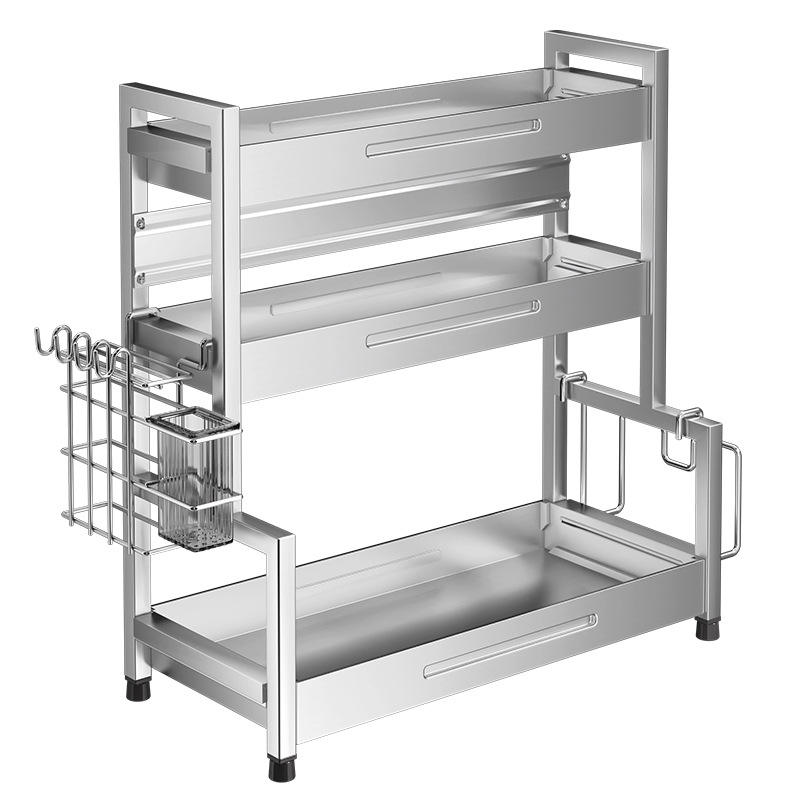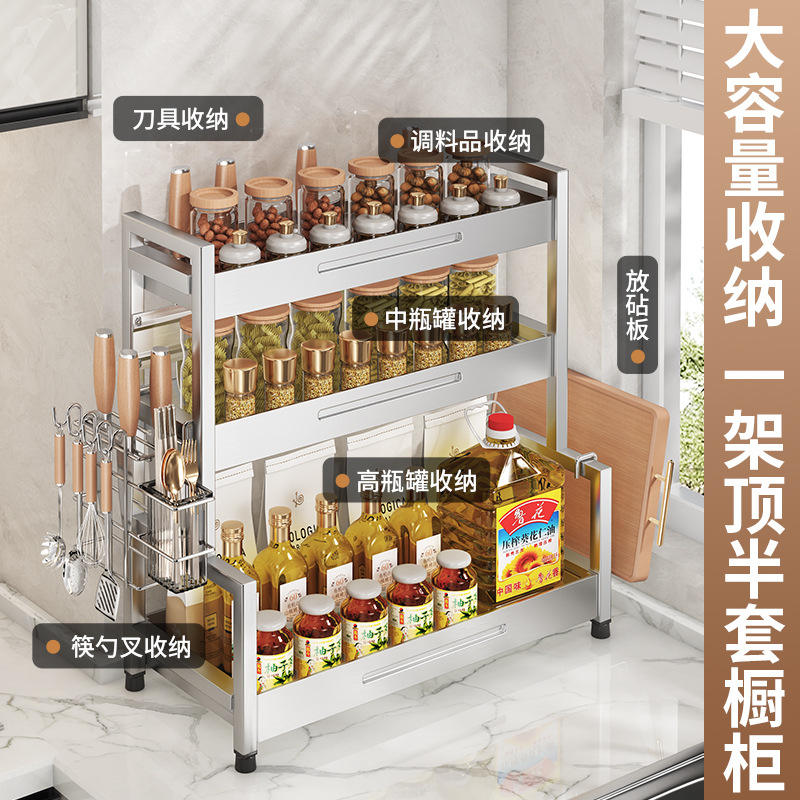 Estante para especias de cocina Sea Shark, de acero inoxidable, de doble capa, para encimera, para aceite, sal, salsa de soja, vinagre, moderno y minimalista