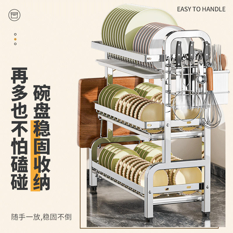 Escurridor de Platos de Acero Inoxidable Sea Shark de 3 Niveles con Portacuchillos y Almacenamiento para Palillos para Gabinete de Cocina