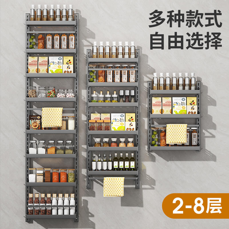 Estante de especias de pared Sea Shark de 3 niveles ajustable, estante de almacenamiento de cocina de acero al carbono para condimentos y utensilios