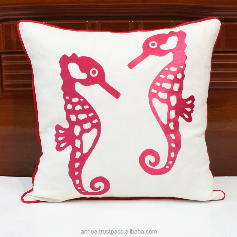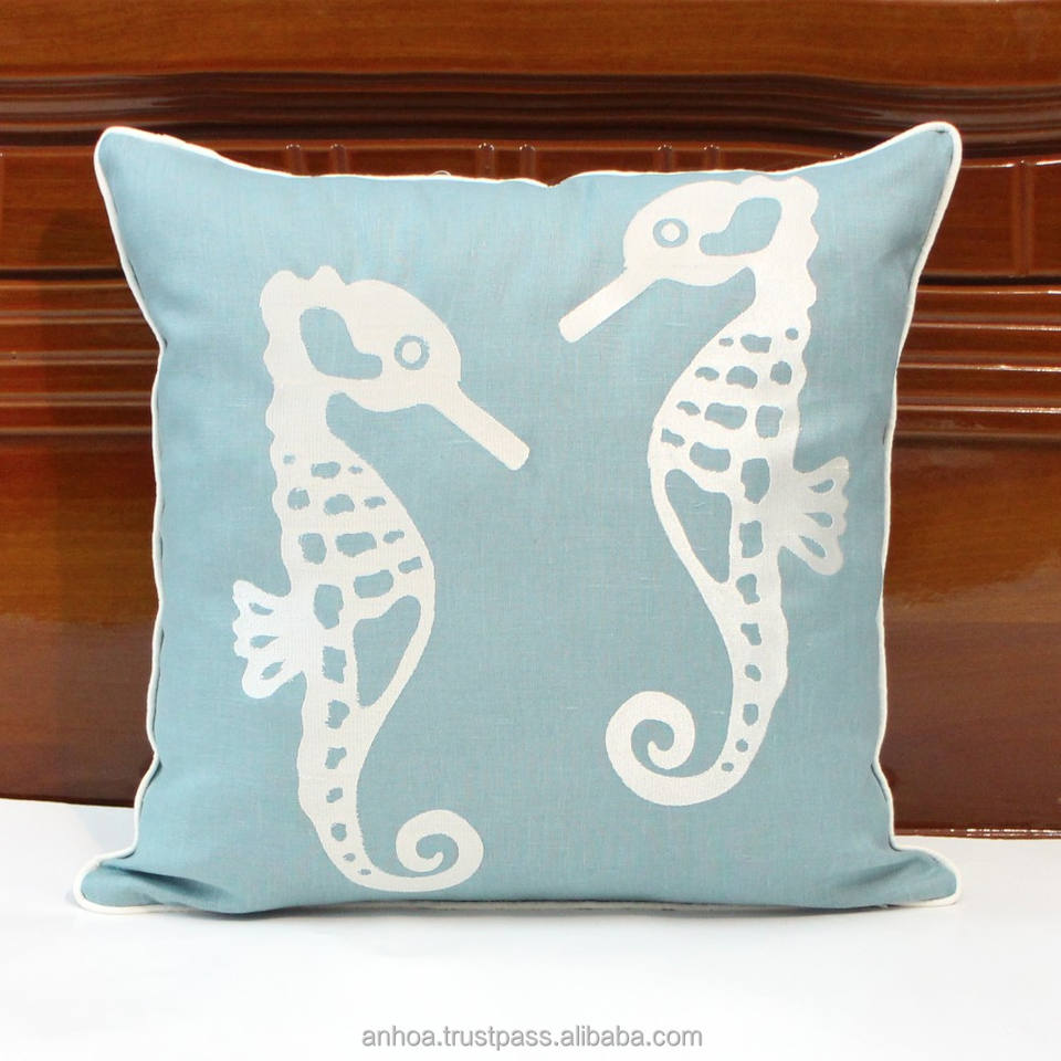 Caballo de mar cojín de lino cubierta