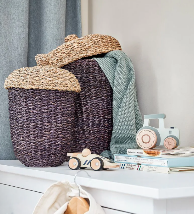 Cesta de almacenamiento de bellotas marrones de algas marinas para decoración de habitación de niños y cestas de lavandería Vietnam
