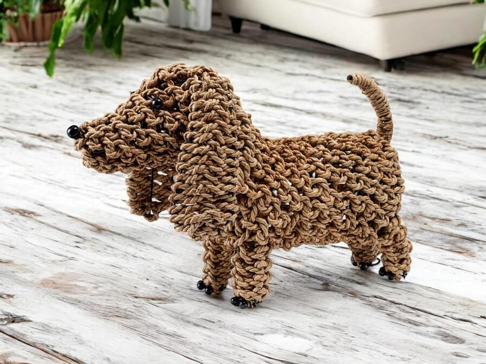 Seagrass Dachshund perro estatuilla:Tamaño: L17 x W16,9 x H10,6 pulgadas