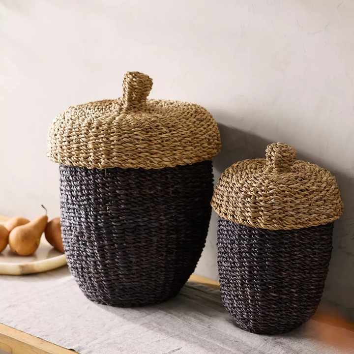 Cesta de Mimbre en Forma de Bellota, Cestas de Mimbre Tejidas a Mano de la Mejor Calidad, Cestas de Paja al por Mayor