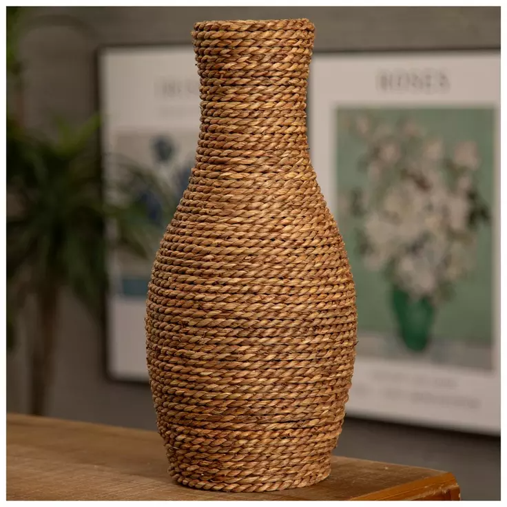 Tamaño: D7,5 x H15 pulgadas:Jarrón Seagrass con flores artificiales