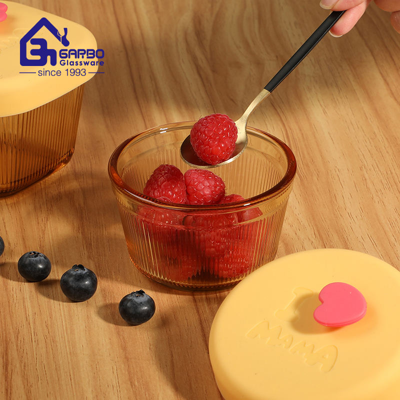 Seal Store Contenedor de vidrio de 210ml Tapas de silicona Horno de microondas Seguro Mini fiambrera Ámbar sólido Contenedor de almacenamiento de alimentos