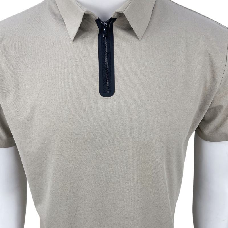 Poliéster sin costuras Spandex Mezclas Cremallera Diseño Solapa Manga corta Polo deportivo para hombres Fitness