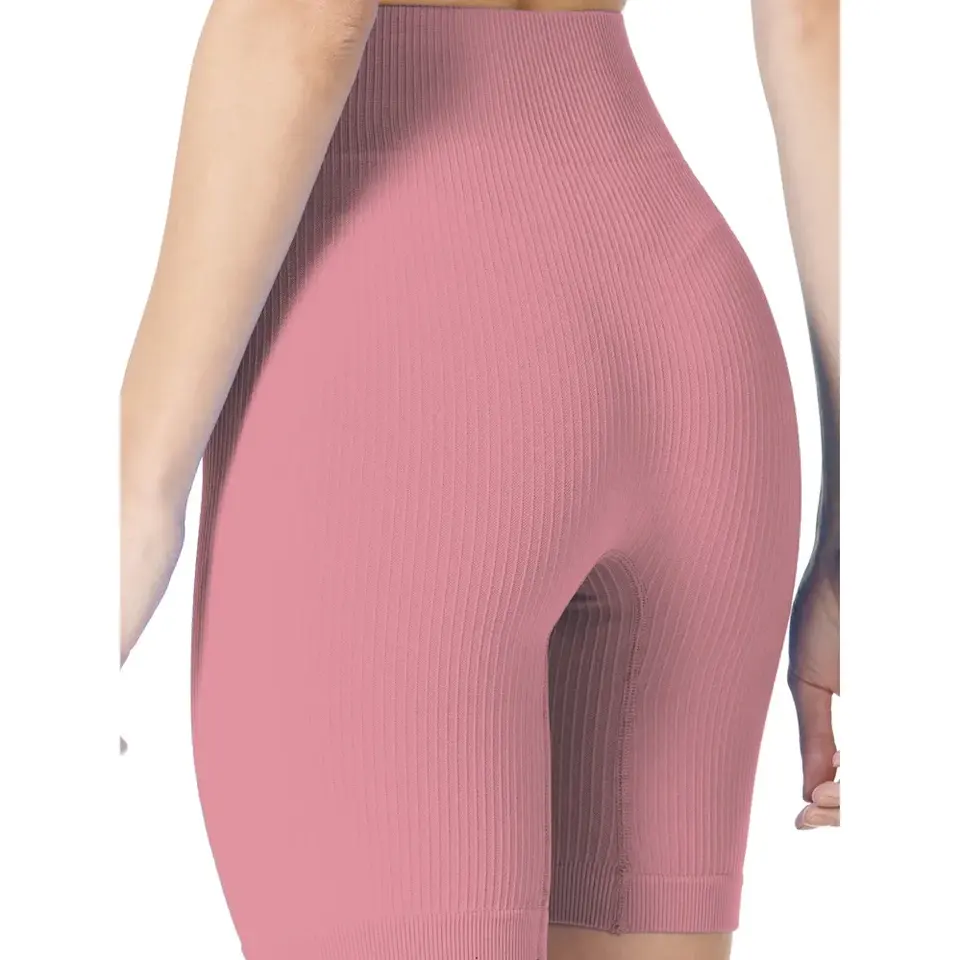 Conjunto Deportivo de Dos Piezas para Mujer, Rosa, Tejido de Canalé Sin Costuras, con Relleno Extraíble, 90% Poliamida 10% Elastano, Sin Mangas