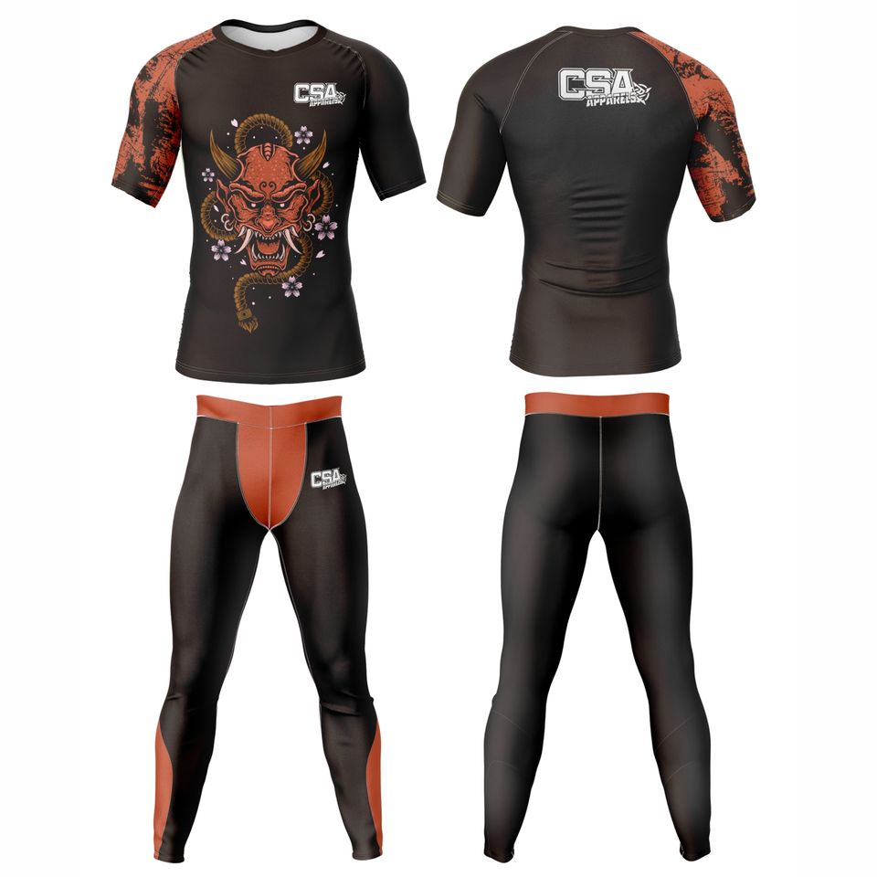 Conjunto de Compresión de Manga Larga con Impresión por Sublimación sin Costuras, Ropa Deportiva Transpirable de Primera Calidad, Rashguard y Leggings para MMA