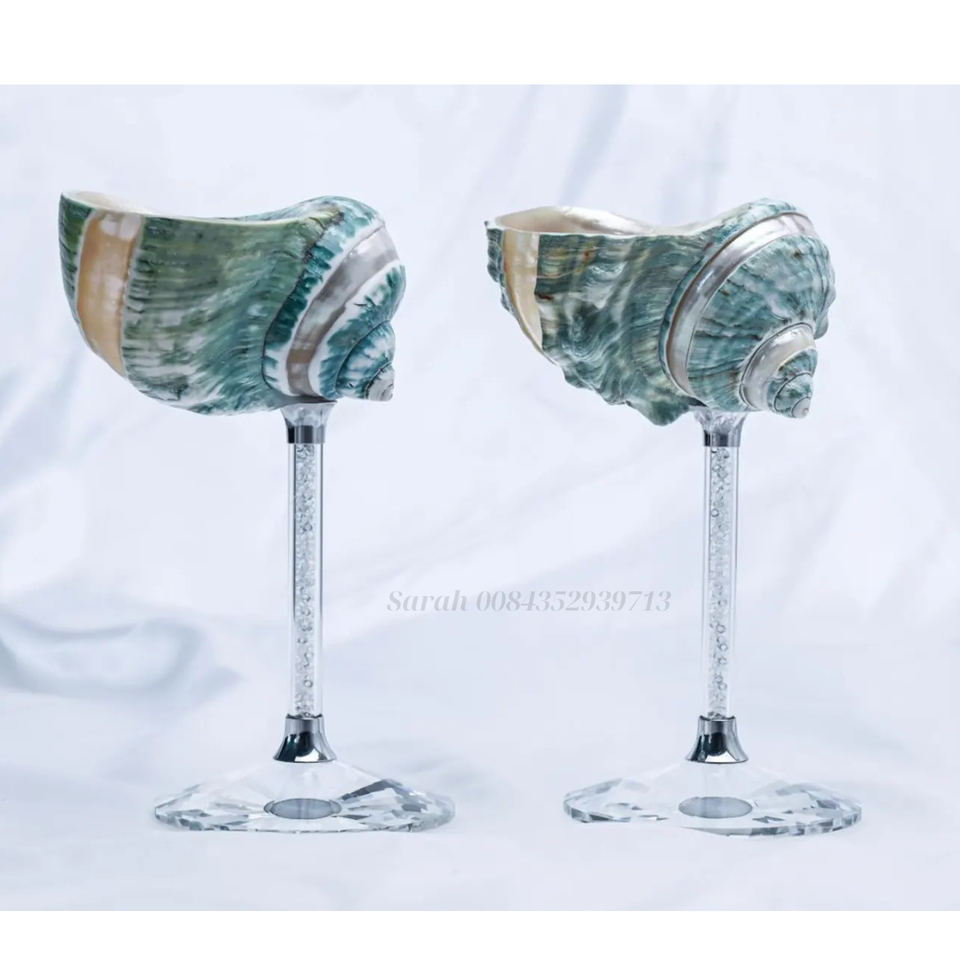 Vasos de concha con base de tallo de cristal para copas de cóctel, copa de vino de concha hecha a mano de lujo, recuerdos de boda, recuerdos de fiesta
