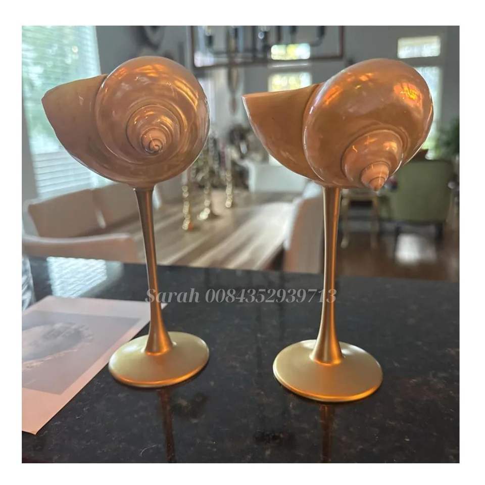 Vasos de concha marina con base de tallo dorado y plateado: copa de vino de concha única hecha a mano para recuerdos de boda, recuerdos de fiesta.