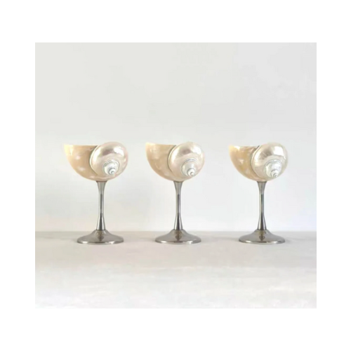 Gafas de concha marina con textura de concha y copa de vidrio, perfectas para fiestas o exhibición costera, hechas en Vietnam