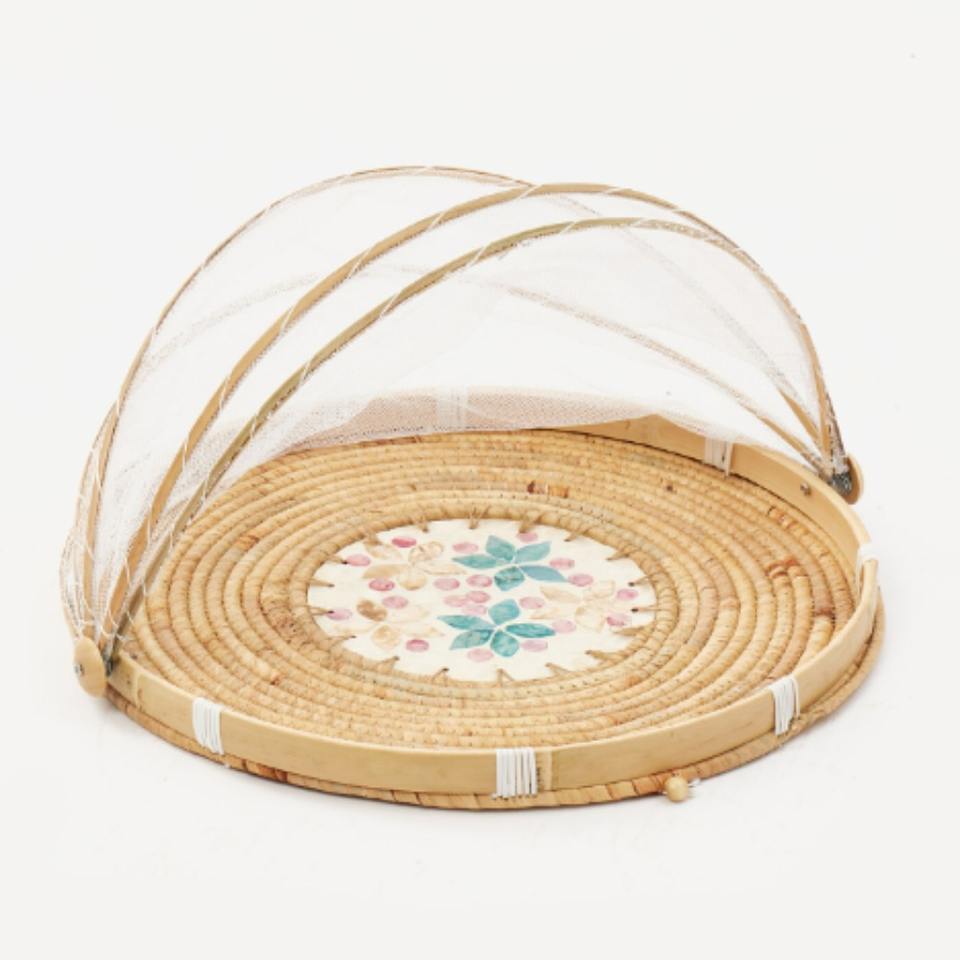 Bandeja con incrustaciones de perlas de concha marina con cubiertas de cúpula de malla, cubierta de placa de comedor para tienda de alimentos a la venta