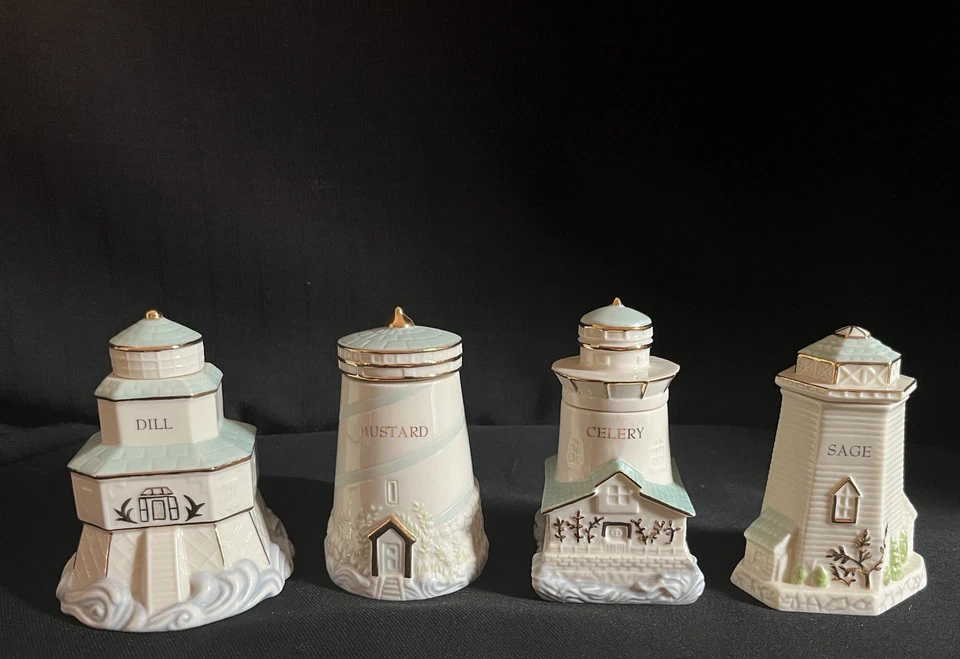 Nombre del producto:Tarros de especias de Casa de porcelana Tarros de especias Seaside Spice Jars Lighthouse Collection