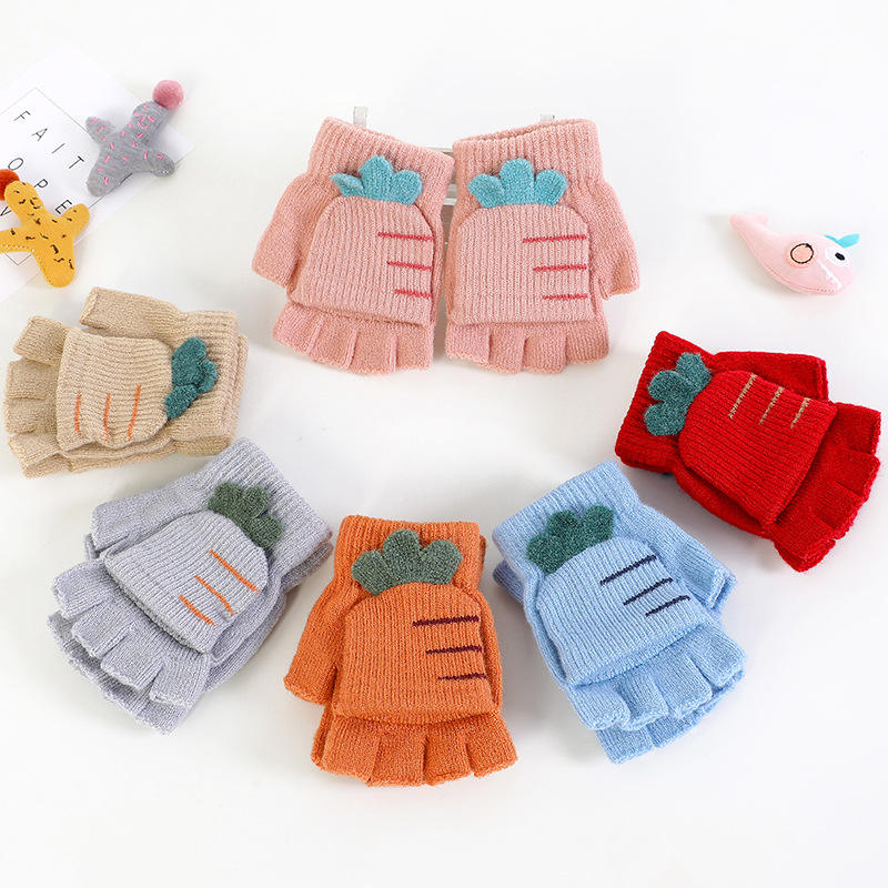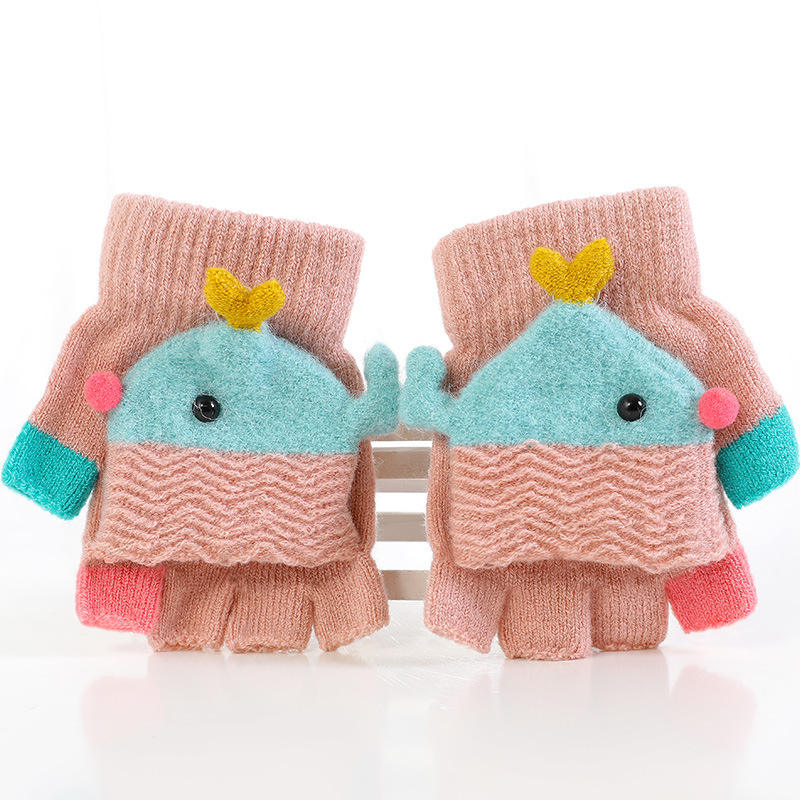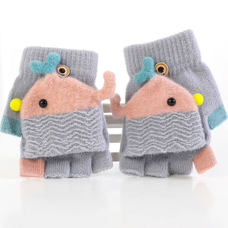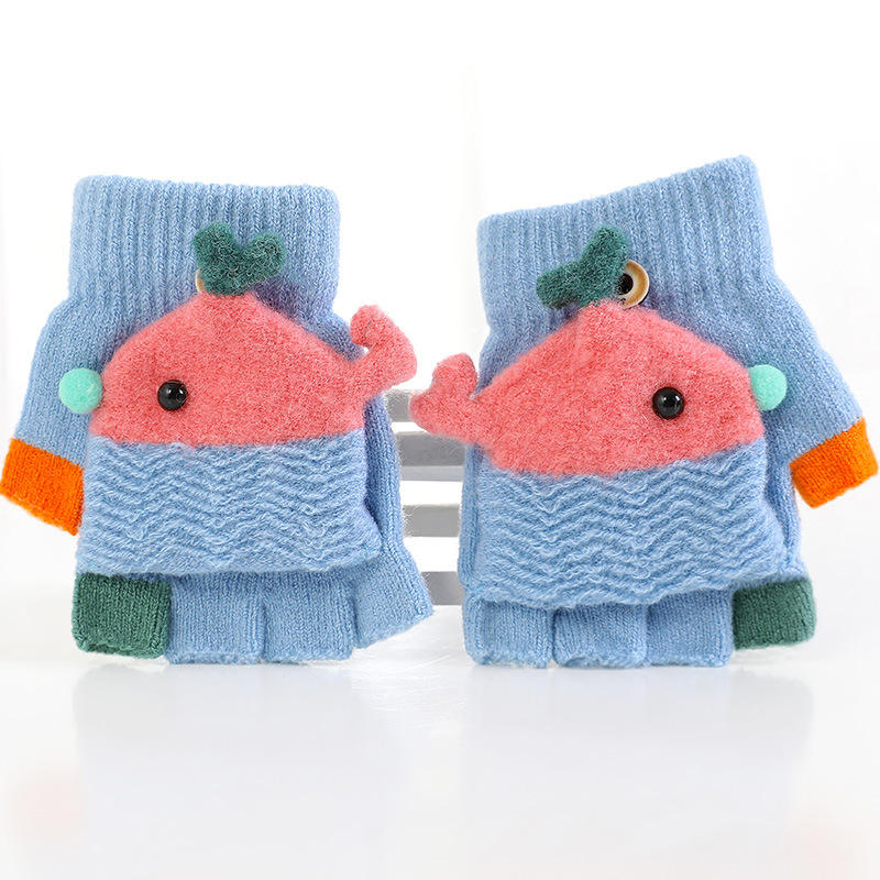Guantes cálidos de dibujos animados de temporada para niños, niños y niñas, guantes escolares para niños, guantes de medio dedo con cinco dedos, fábrica