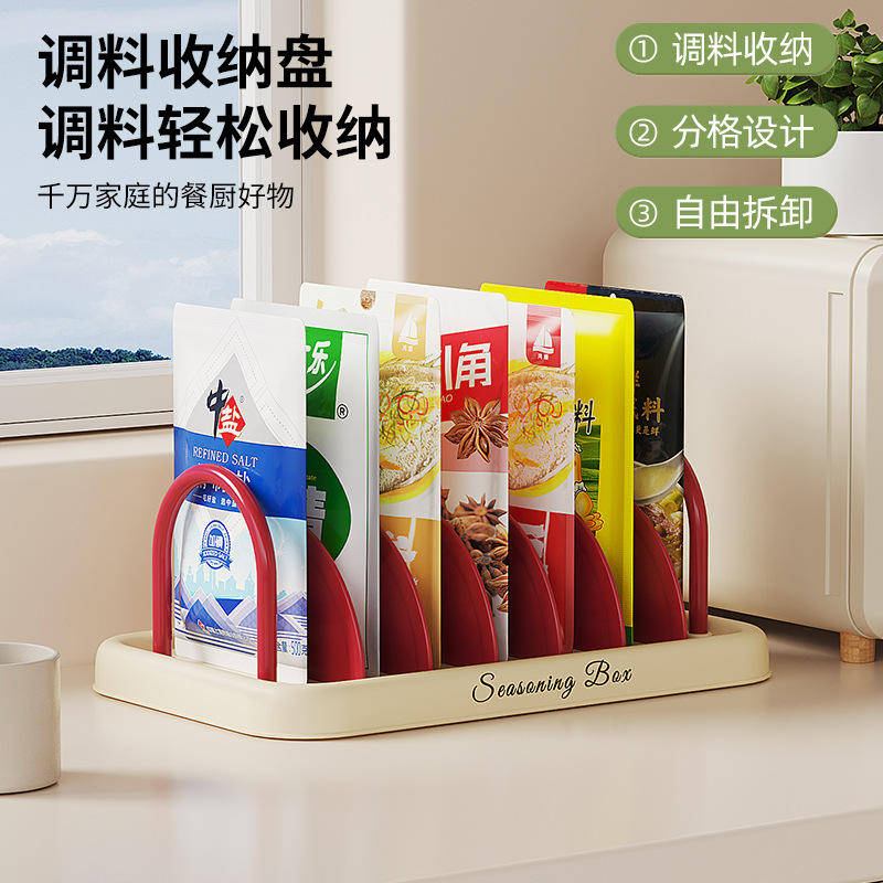 Seasoning Box Multi Functional Storage Rack For Spice Jars Kitchen Organizer With Six Compartments Portable Design