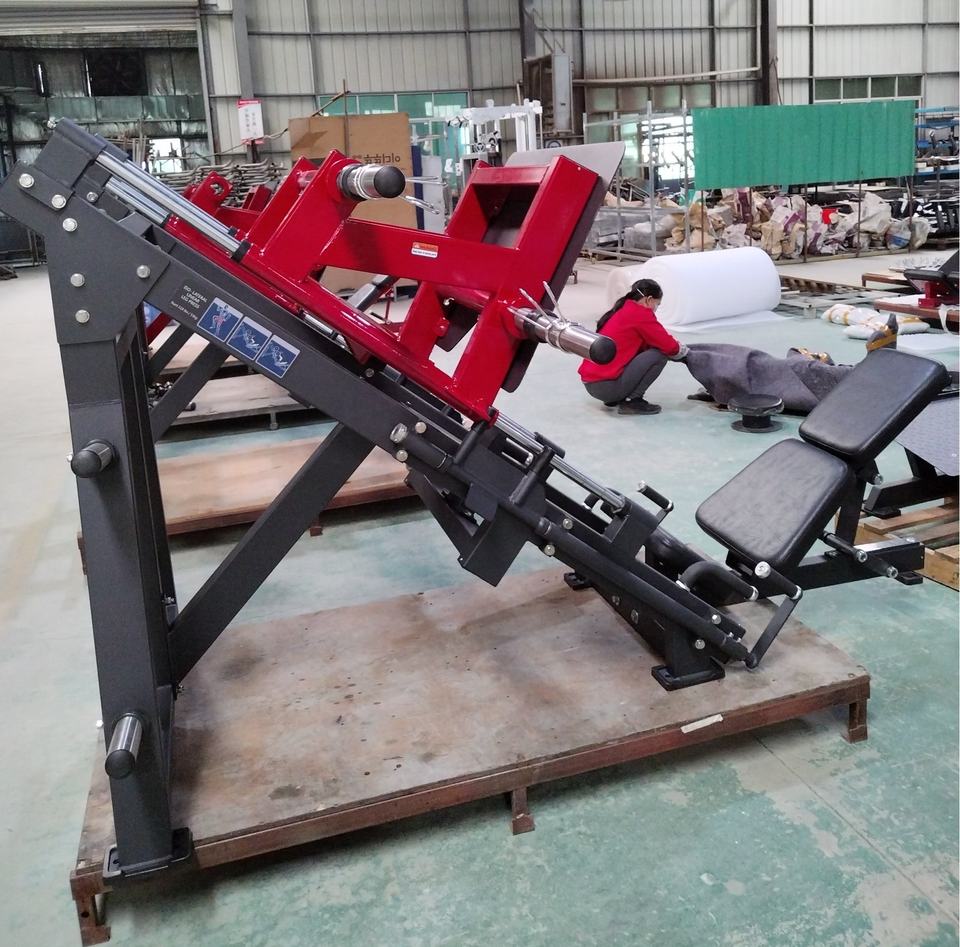 Cajas de hierro/caja de madera/paleta: máquina de prensa de piernas Vertical de martillo equipo de gimnasio comercial Placa de inclinación lineal fuerza cargada prensa de piernas de 45 grados