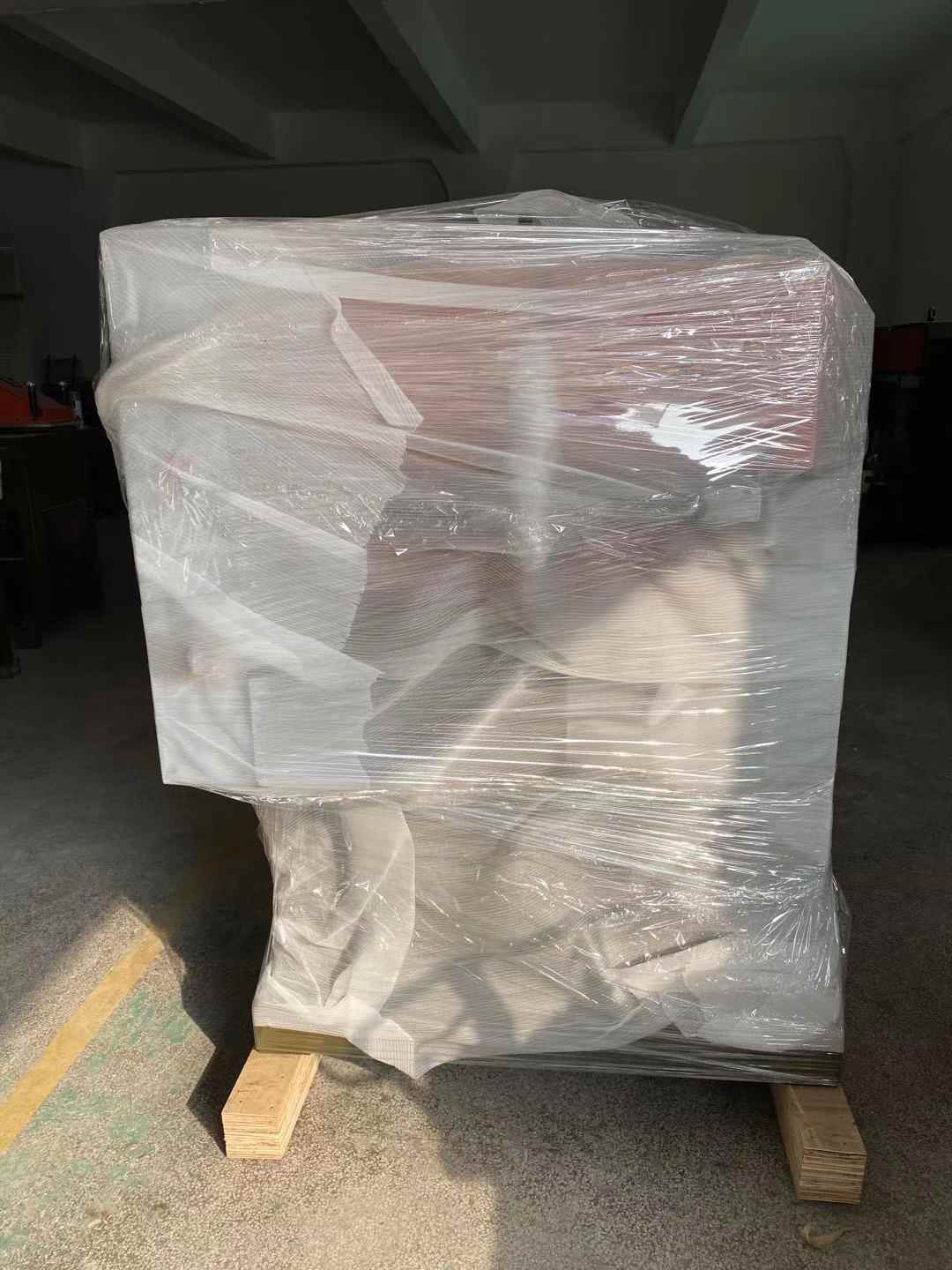 Atom PL1251Embossing Machine for leather is packed with pallet,wooden case,plastic film with pearl wool.