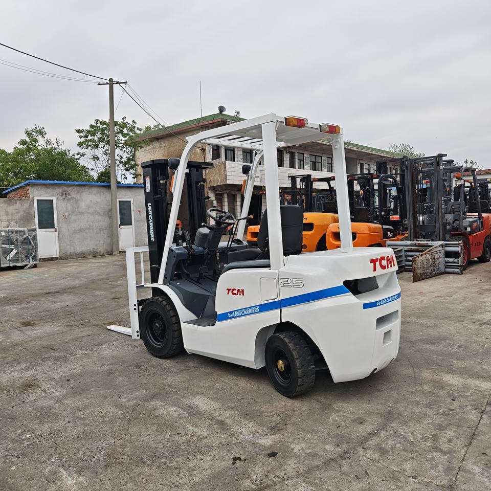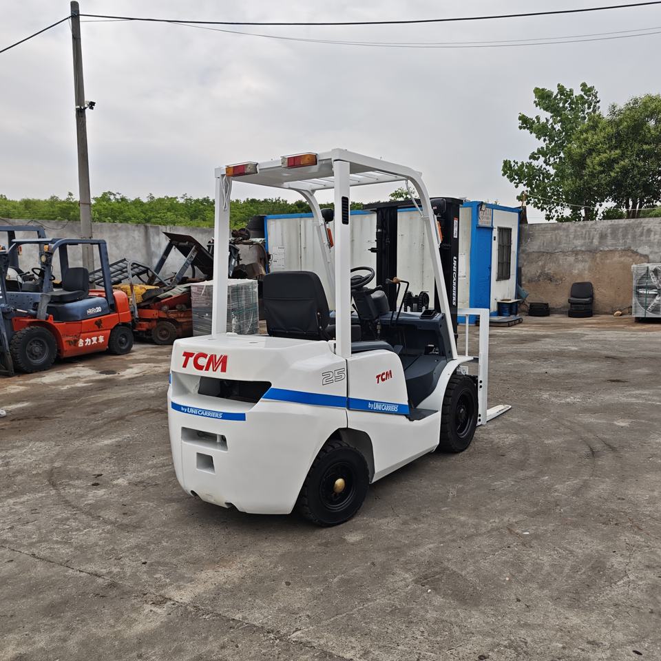 Montacargas de Segunda Mano TCM FD25, Modelo 2.5 Toneladas, Diésel, Condensador, FWD, Mástil de Dos Etapas, Neumáticos Sólidos, Motor Isuzu, Blanco